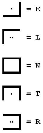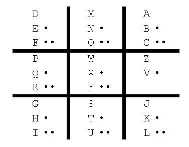 These nine field are not sufficient to represent 26 characters, so additional dots (one or two) help. Here are some examples. |