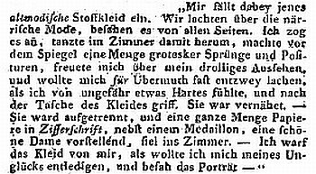 Im Jahre 1808 wurde in einem Buch ein verschlüsselter Brief abgedruckt, der einige Jahre vorher von der jungen Gräfin Julie von Ortenburg gefunden wurde.